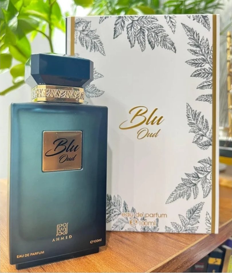 عطر Blu Oud Eau De Parfum من أحمد المغربي هو عطر فاخر يتميز بمزيج ساحر من نفحات العود العميقة واللمسات الشرقية الراقية، مقدم في زجاجة أنيقة بلون أزرق داكن وتصميم فخم.