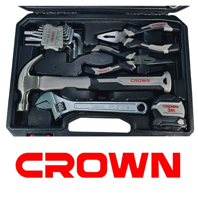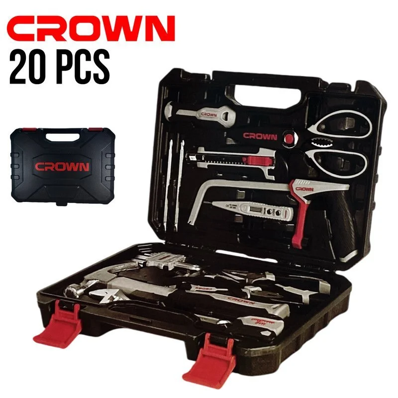 مجموعة أدوات يدوية متكاملة من CROWN PROFESSIONAL تحتوي على 20 قطعة أساسية، مصممة لتناسب احتياجات الإصلاح والصيانة المنزلية، وكذلك الورش المهنية.