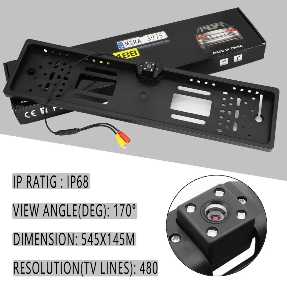 Caméra de recul HD pour voiture, Avec cadre de plaque d'immatriculation Standard , étanche, Vision nocturne, 4 LED