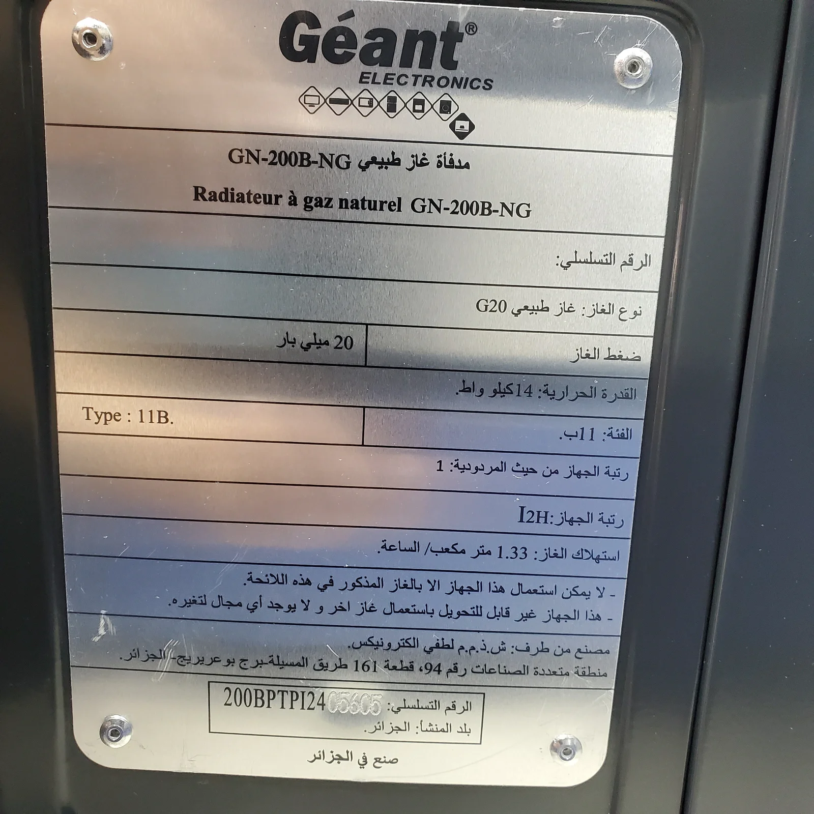 إستهلاك الغاز : 1.33 متر مكعب في الساعة