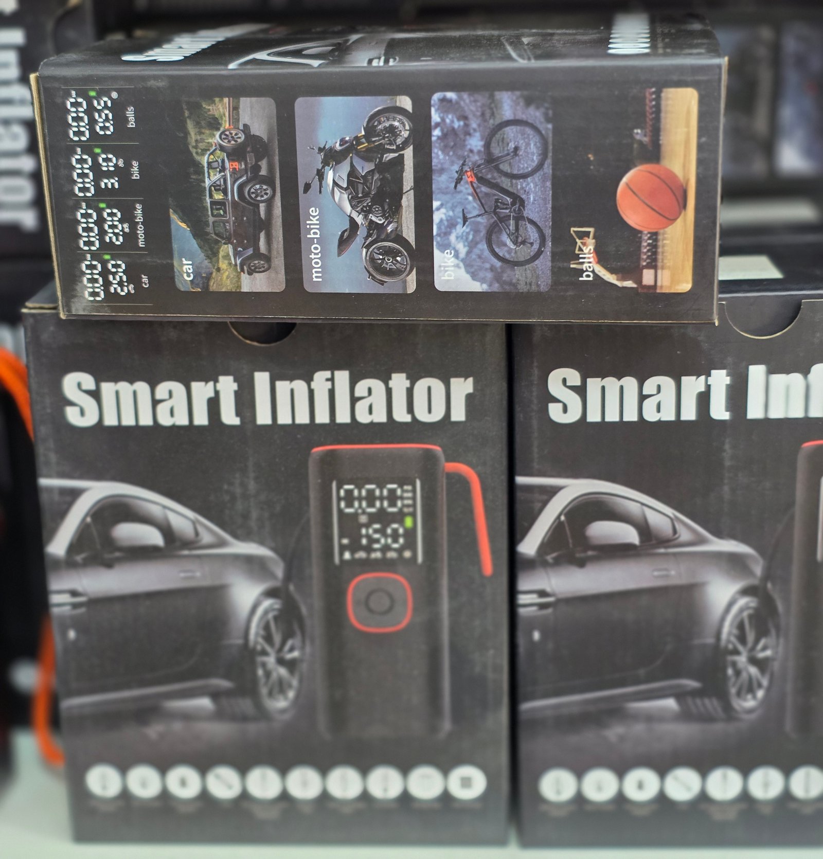 جهاز Smart Inflator هو منفاخ إطارات محمول متعدد الاستخدامات، مصمم لتلبية احتياجاتك في نفخ إطارات السيارات، الدراجات النارية، الدراجات الهوائية، وحتى الكرات الرياضية، مع أوضاع مسبقة الإعداد لكل نوع.