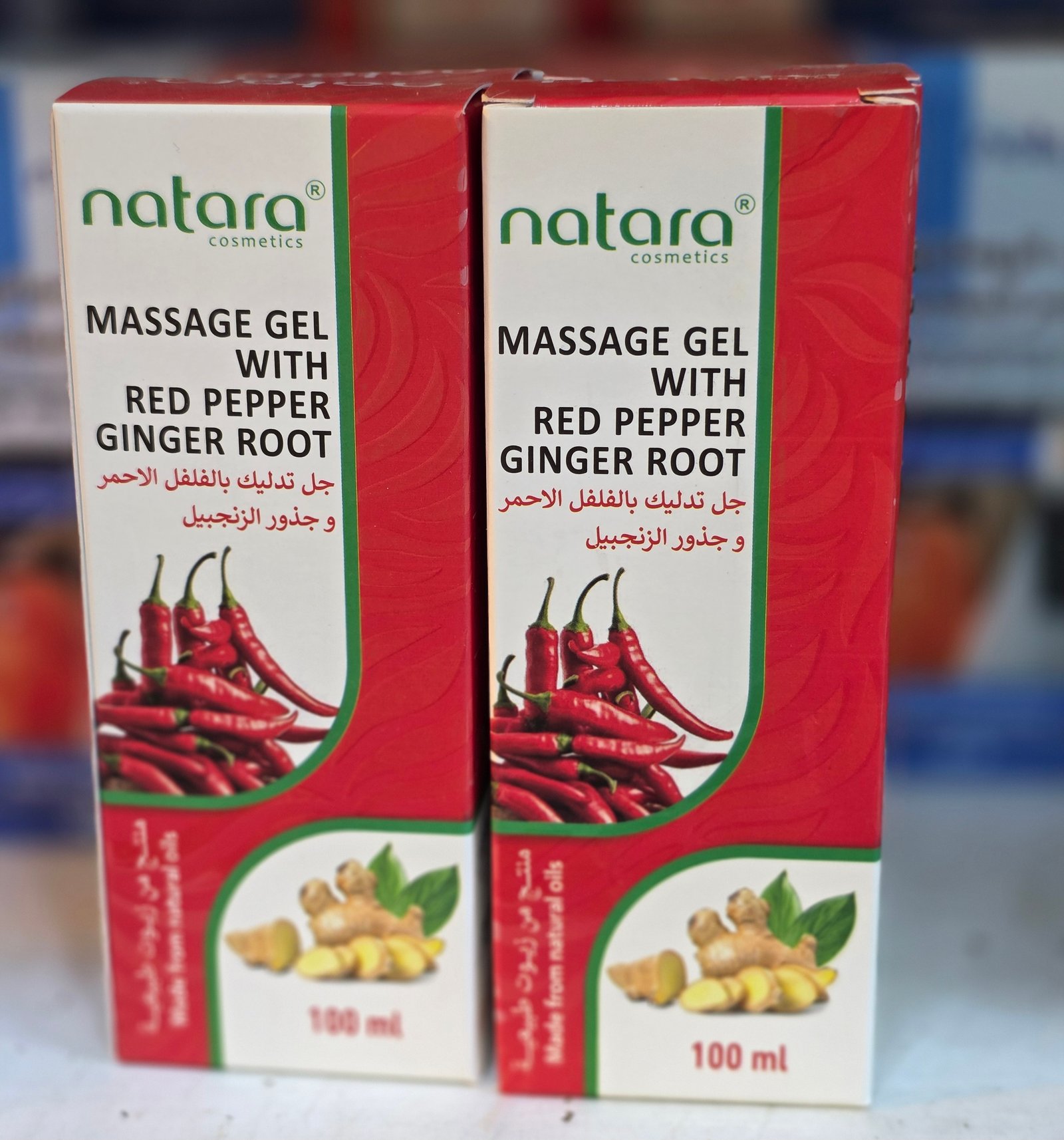 جيل التدليك من Natara Cosmetics بخلاصة الفلفل الأحمر وجذر الزنجبيل، هو منتج مخصص لتخفيف التشنجات العضلية وتحفيز الدورة الدموية بفضل خصائصه الحرارية. يحتوي على مستخلصات طبيعية من الفلفل الأحمر والزنجبيل المعروفة بتأثيرها المهدئ والمُسخن للبشرة، مما يساعد على استرخاء العضلات وتقليل الشعور بالتعب. يُستخدم الجيل بتطبيق كمية مناسبة على المنطقة المراد تدليكها، مع التدليك بلطف حتى يتم امتصاصه بالكامل. يأتي المنتج في عبوة بحجم 100 مل.