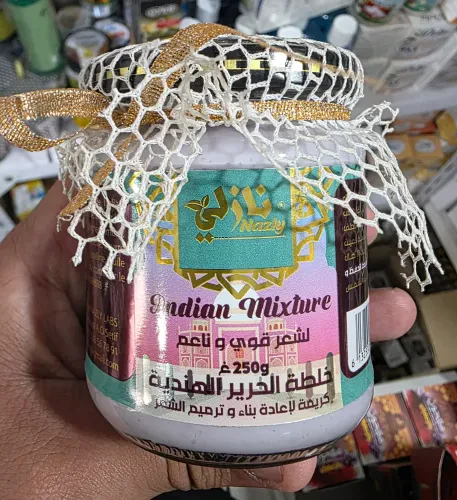 خلطة الحرير الهندية من Nazly عبارة عن كريم مخصص للعناية بالشعر بتركيبة طبيعية غنية تساعد على إعادة بناء الشعر التالف وترميمه بعمق.