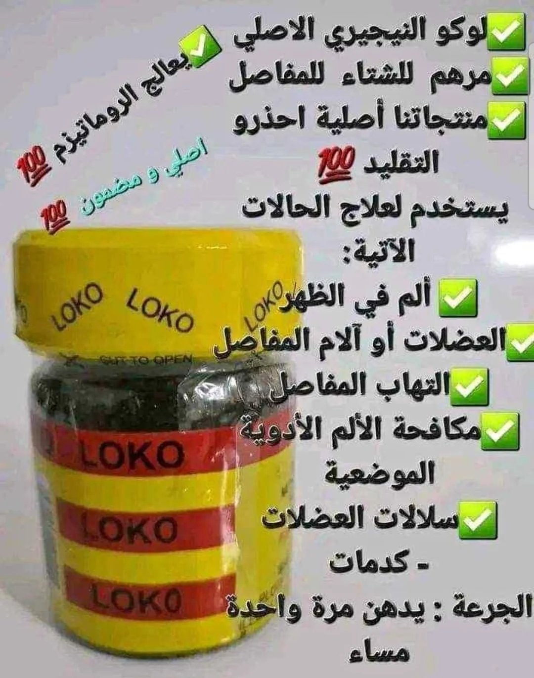 وداعاً لآلام المفاصل و العظام مرهم....Loko Medicated Rub الأصلي النيجيري العجيب و الفعال يستخدم لعلاج الحالات الآتية: