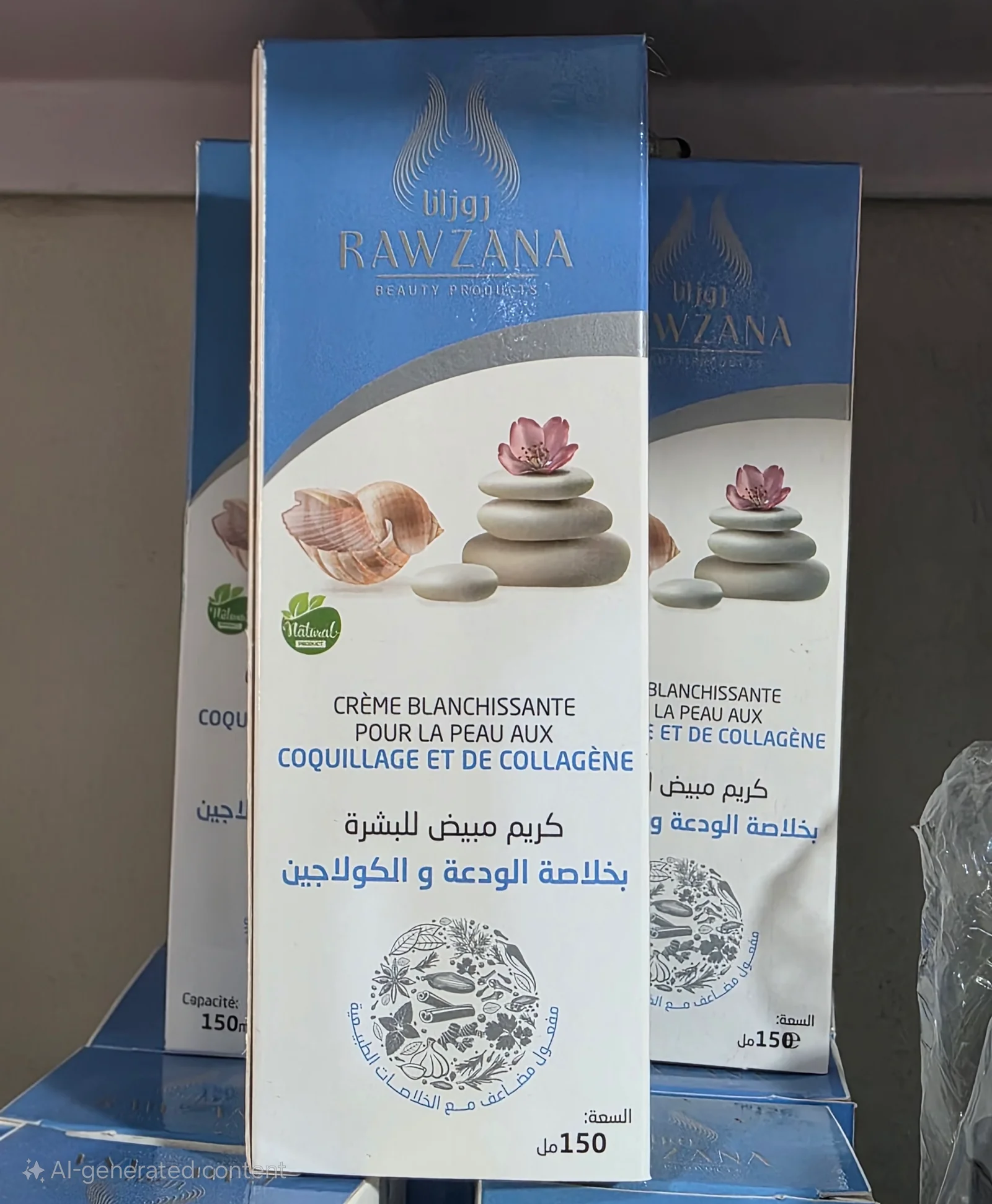 كريم RAWZANA هو كريم مبيّض للبشرة بتركيبة فريدة تجمع بين خلاصة الودعة والكولاجين، ما يمنح البشرة إشراقة طبيعية ونضارة واضحة. يعمل على توحيد لون البشرة وتفتيح البقع الداكنة، كما يعزز مرونة الجلد ويمنحه ملمسًا ناعمًا ومشدودًا.