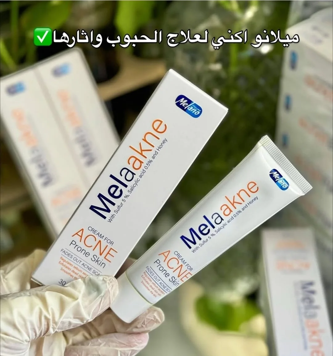كريم ميلاكـن (Melaakne Cream) مصمم خصيصًا للبشرة المعرضة لحبّ الشباب، حيث يساعد على علاج الحبوب وتقليل آثارها. يحتوي على مكونات فعّالة مثل الكبريت بنسبة 5% الذي يعمل على تجفيف الحبوب وتنقية المسام، وحمض الساليسيليك بنسبة 0.5% الذي يساهم في إزالة الخلايا الميتة وتنظيف البشرة بعمق، بالإضافة إلى العسل الذي يرطّب البشرة ويهدّئ التهيجات.
