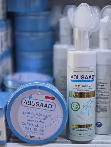ABUSAAD Cosmétiques، وهي تعتمد على حليب الماعز كمكوّن أساسي للعناية بالبشرة.
