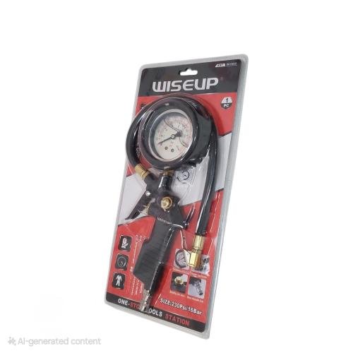 مقياس ضغط إطارات من WISEUP لقياس ضغط هواء الإطارات بدقة عالية، بمدى قياس من 0 إلى 230 psi.