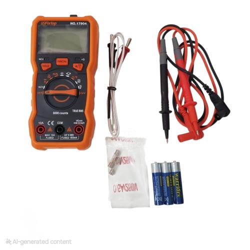 جهاز متعدد القياسات (مولتيميتر) مصمم لقياس الجهد، التيار، المقاومة، السعة، التردد، ودرجة الحرارة بدقة عالية. يتميز بشاشة كبيرة عالية التباين تعرض الرموز بوضوح كامل، مما يسهل قراءة النتائج.