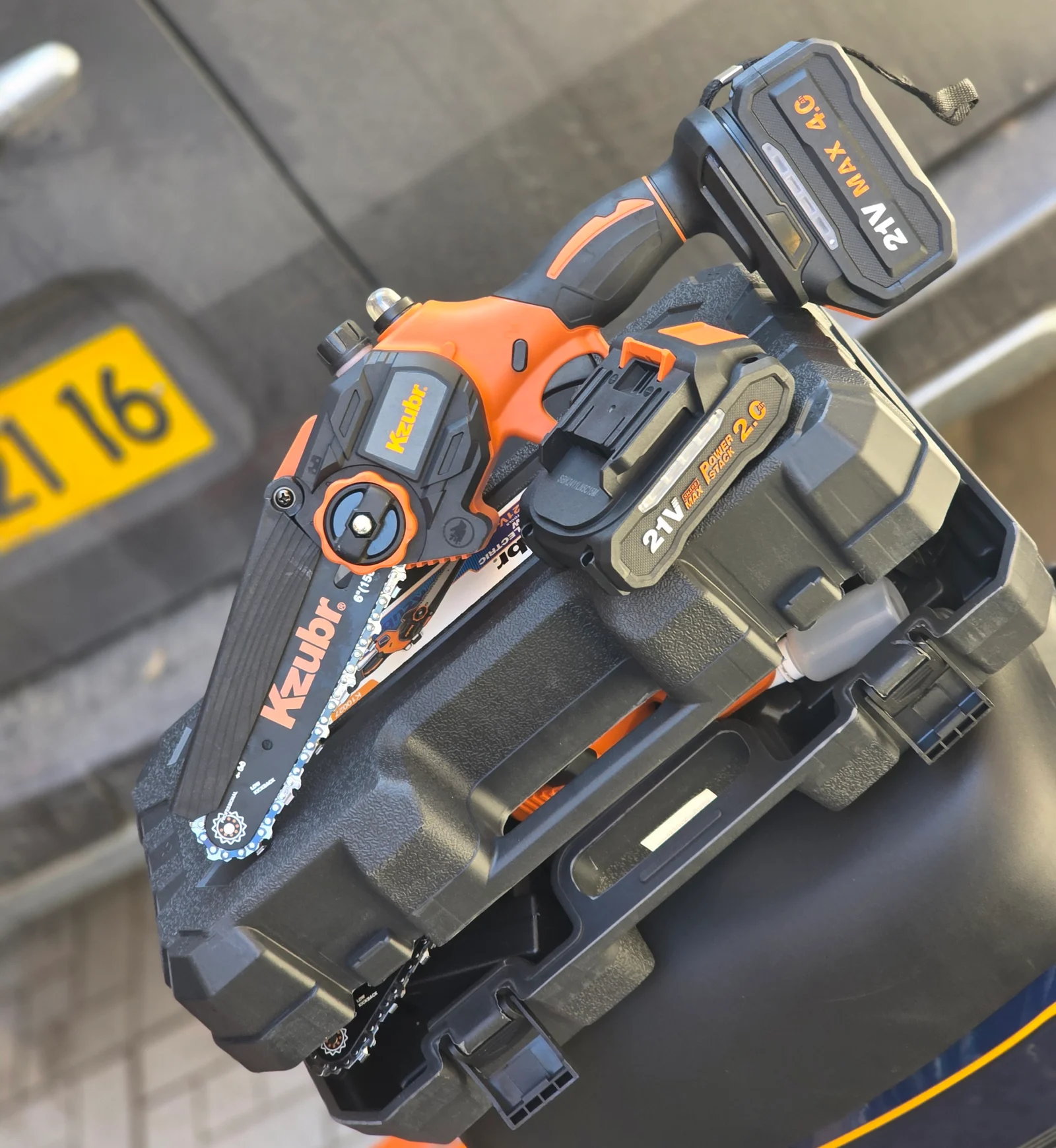 منشار كهربائي خفيف الوزن ومحمول، يعمل ببطارية ليثيوم بجهد 21 فولت، مخصص لتقليم الفروع وقص الأشجار الصغيرة. يتميز بحجم شفرة حوالي 6 بوصات، تصميم مناسب للاستخدام المنزلي والحدائقي، ويوفر حرية حركة دون الحاجة إلى سلك.