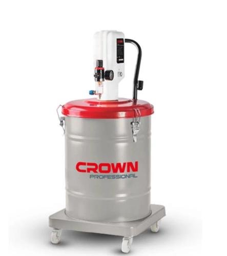 مضخة شحم هوائية من نوع CROWN CT38098 بسعة خزان 30 لتر، مصممة لتزويد الشحم تحت ضغط عالٍ في الاستخدامات الصناعية والميكانيكية. تعمل بضغط هواء يتراوح بين 6 و8 بار بنسبة ضغط 50:1، مما يتيح أداءً قويًا وثابتًا.