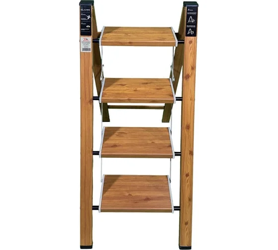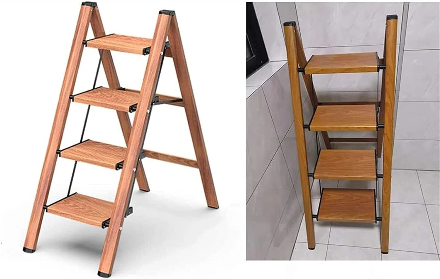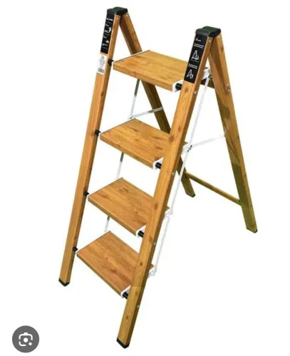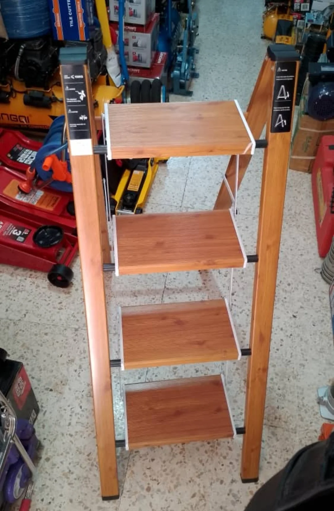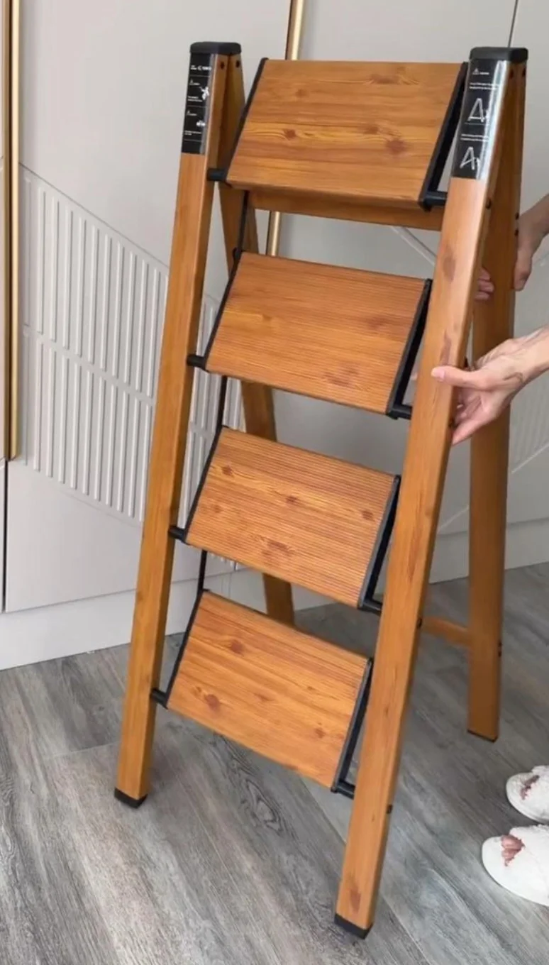 سلم منزلي متعدد الاستخدامات بتصميم عملي وأنيق، مصنوع من هيكل معدني متين بلمسة خشبية تمنحه مظهراً أنيقاً.