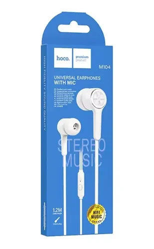 سماعة الأذن Hoco M104 Gamble تأتي بتصميم عملي وعصري لتوفير تجربة صوتية مريحة وعالية الجودة. تتميز بمقبس 3.5 مم عالمي يناسب معظم الأجهزة، مع ميكروفون مدمج وزر متعدد الوظائف للتحكم بالموسيقى والمكالمات بسهولة.