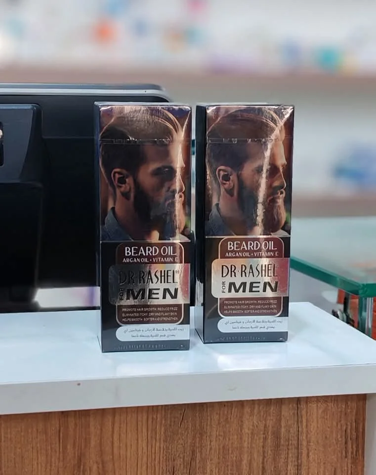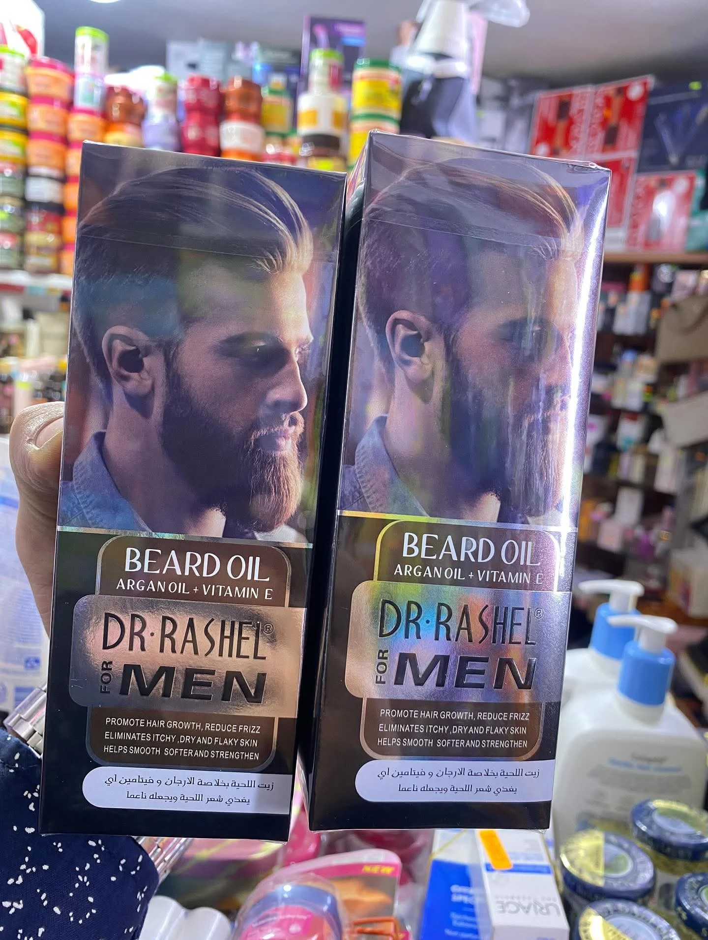 زيت اللحية للرجال من DR.RASHEL بخلاصة زيت الأرجان وفيتامين E، مصمم خصيصاً للعناية باللحية وتغذيتها.
